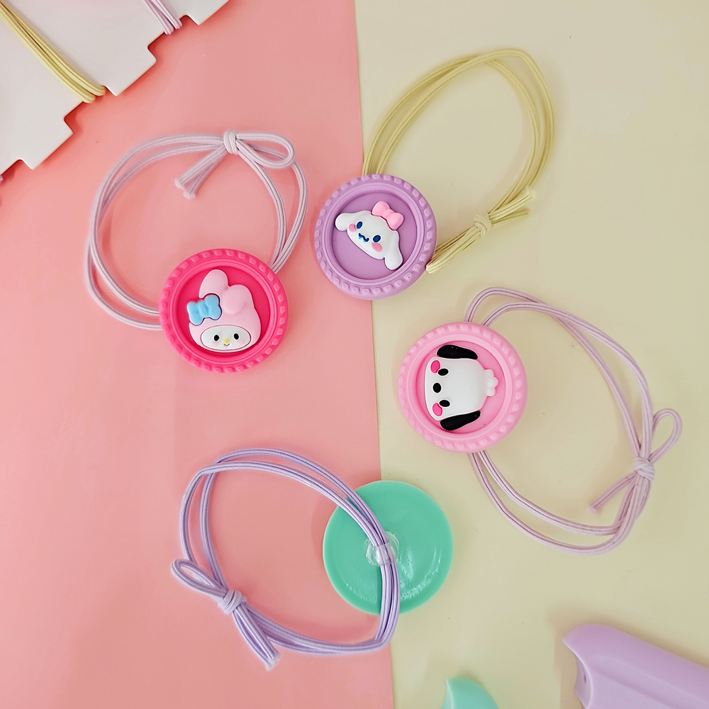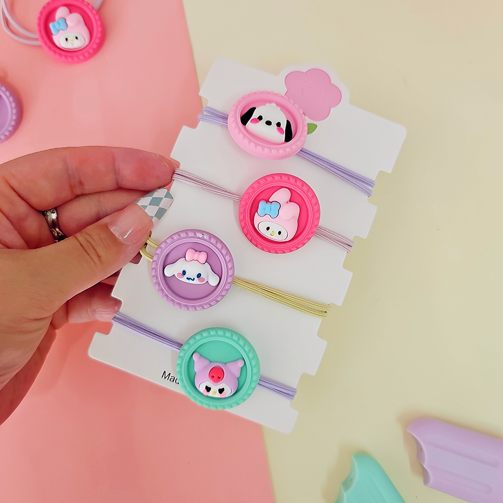 (Blíster de 4 colitas con decoración de kuromi, geniales para realizar peinados divinos).