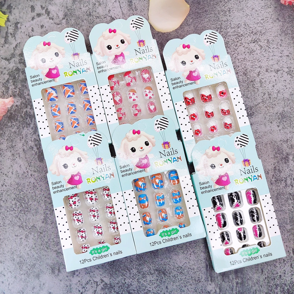 (Uñas postizas infantiles con diversos diseños super bonitos, cada caja contiene 12 piezas. Trae consigo un adhesivo).