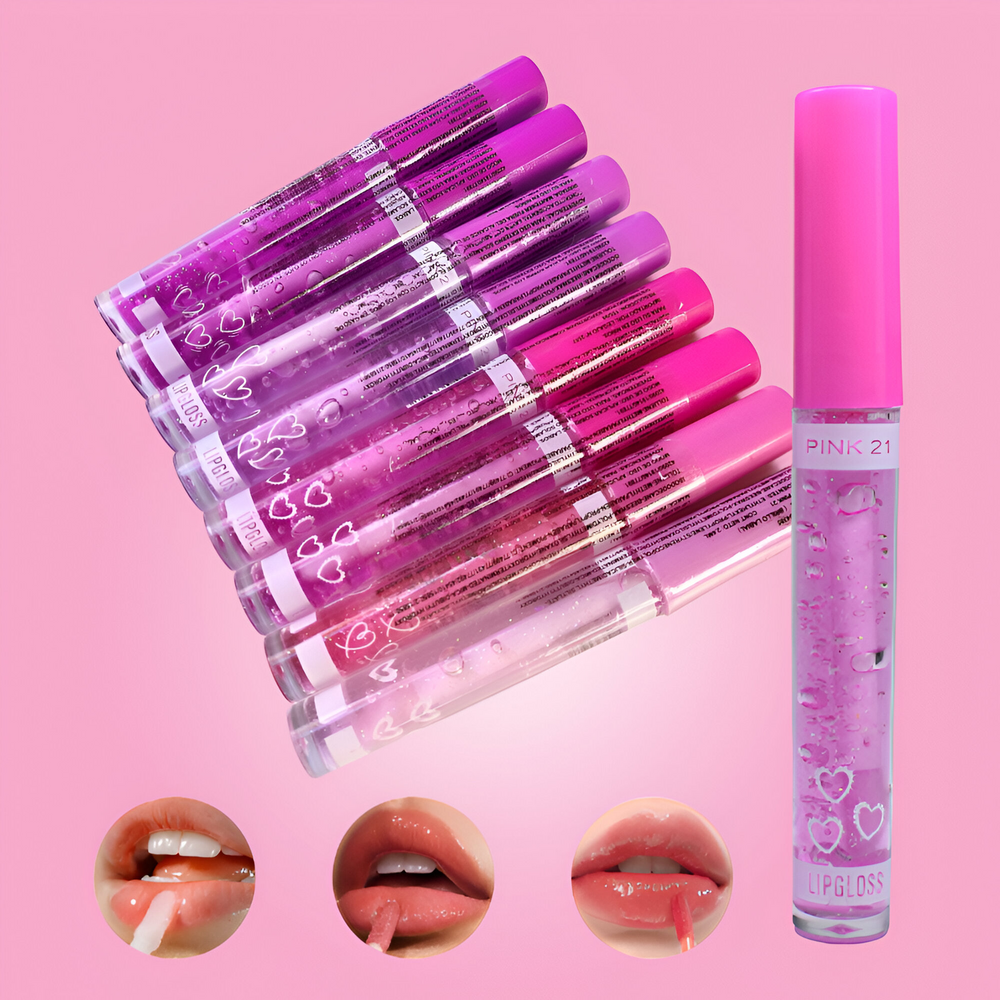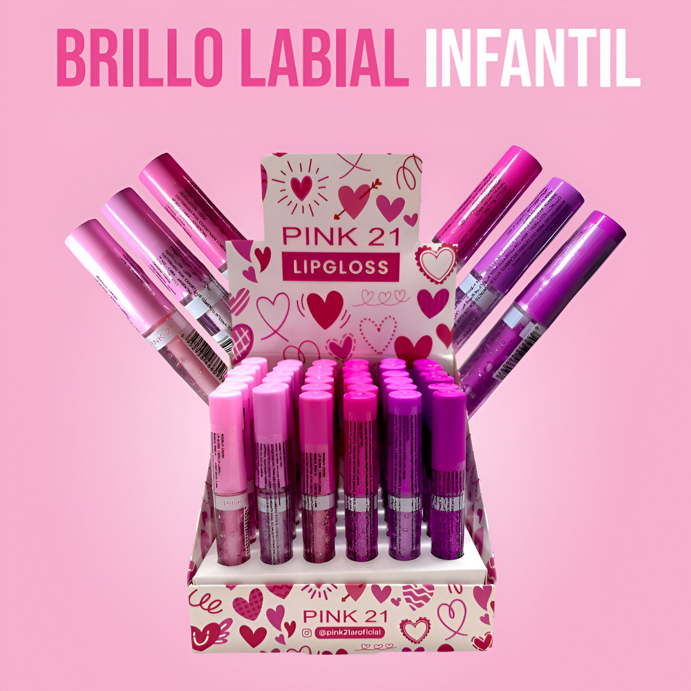 (Caja x32 unidades de Lipgloss ultra brillante "Pink 21". Variedad en 6 modelos a elección. Un acabado brillosos luciéndolos natural).