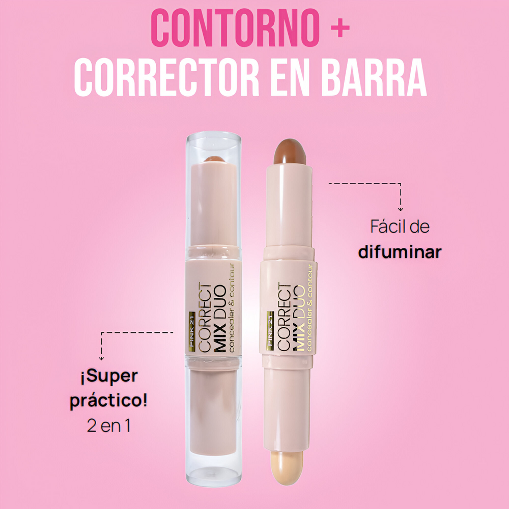 (Mix de corrector + contorno "Pink 21", 3 modelos a elección donde cada uno contiene 2 tonos. Ideal para retocarte durante el día y destacar tu maquillaje).