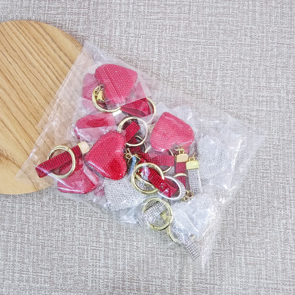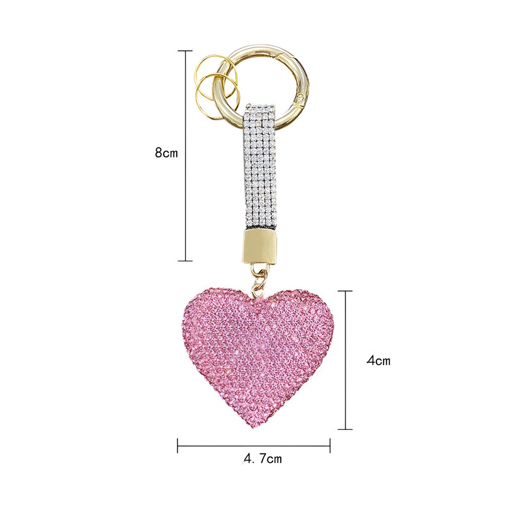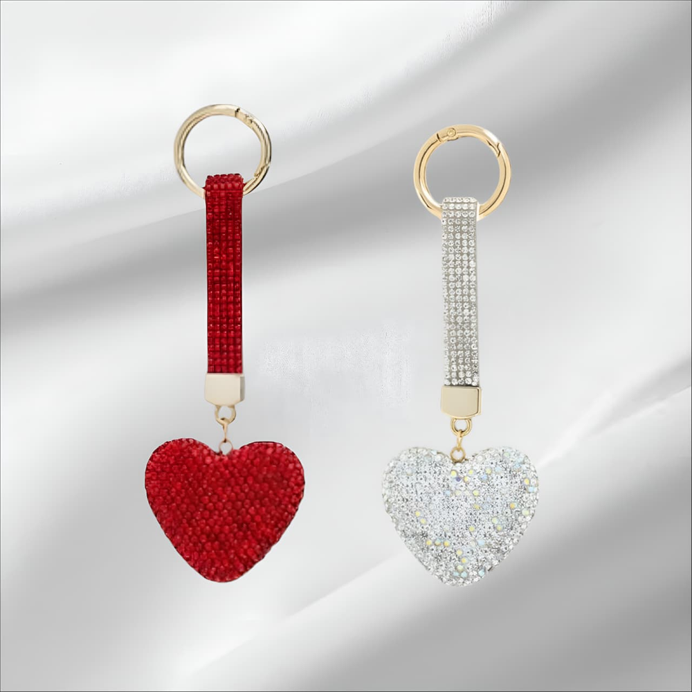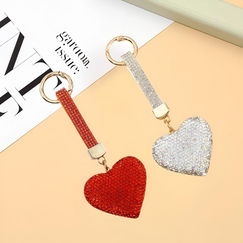 (Llavero de strass con forma de corazón. Cuenta con una correa brillosa y un aro metálico de color dorado. Ideal para regalar).