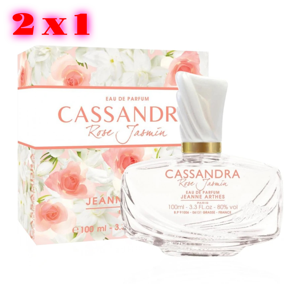(Los perfumes Cassandra para mujeres delicadas y sensibles tienen una nueva adición floral con una fragancia encantadora y refinada. Este nuevo perfume le da a las flores favoritas en perfumería, rosa y jazmín, un lugar de honor, ambos símbolos de amor, belleza y sensualidad. Una unión floral con encanto inmediato para atraer a mujeres románticas y atrevidas. Notas de salida: naranja amarga, té de jazmín, fresia, pera. Notas de corazón: durazno blanco, magnolia, rosa, jazmín. Notas de fondo: cedro blanco, almizcle, ámba).